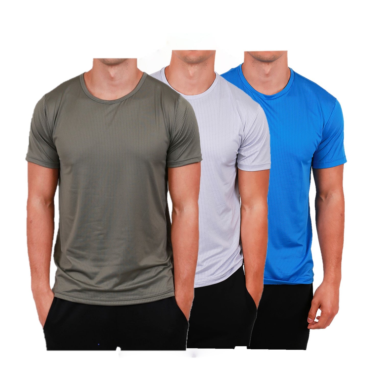 Men's Workout Short Sleeve Dry Fit Top 3 Color Set L. Bl, Oli, L. Gr